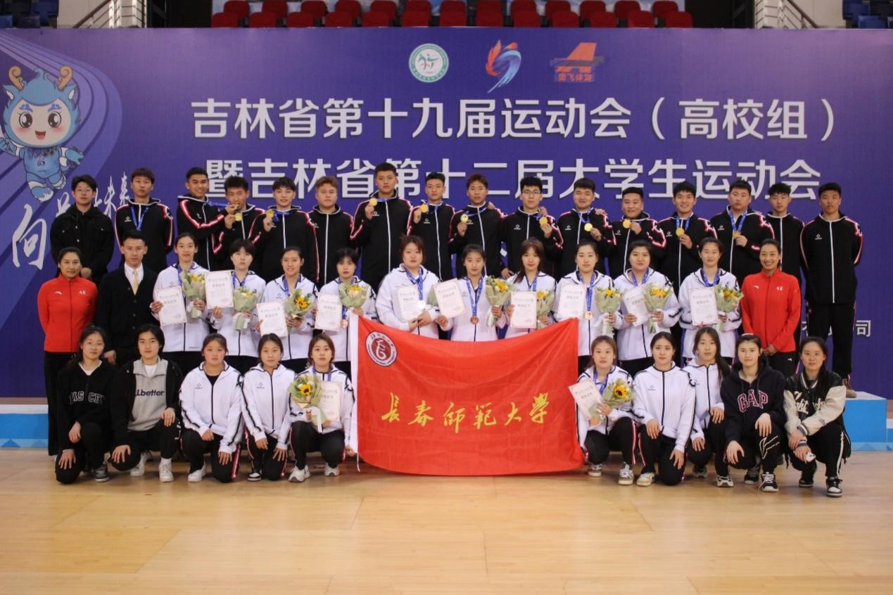近日,在吉林省第十九届运动会(高校组)暨吉林省第十二届大学生运动会比赛中,我校运动员充分发扬奋勇争先,不怕吃苦的精神,斩获田径女子1500米、男子铁饼、女子铁饼、男子排球、男子跳绳、健美操自选动作等6个项目金牌,男子足球、武术长拳、男子单打羽毛球等5个项目银牌和男子篮球、女子排球、女子团体网球、男子乒乓球团体等14项目铜牌,最终获奖牌榜及总分榜菁英组第四名。