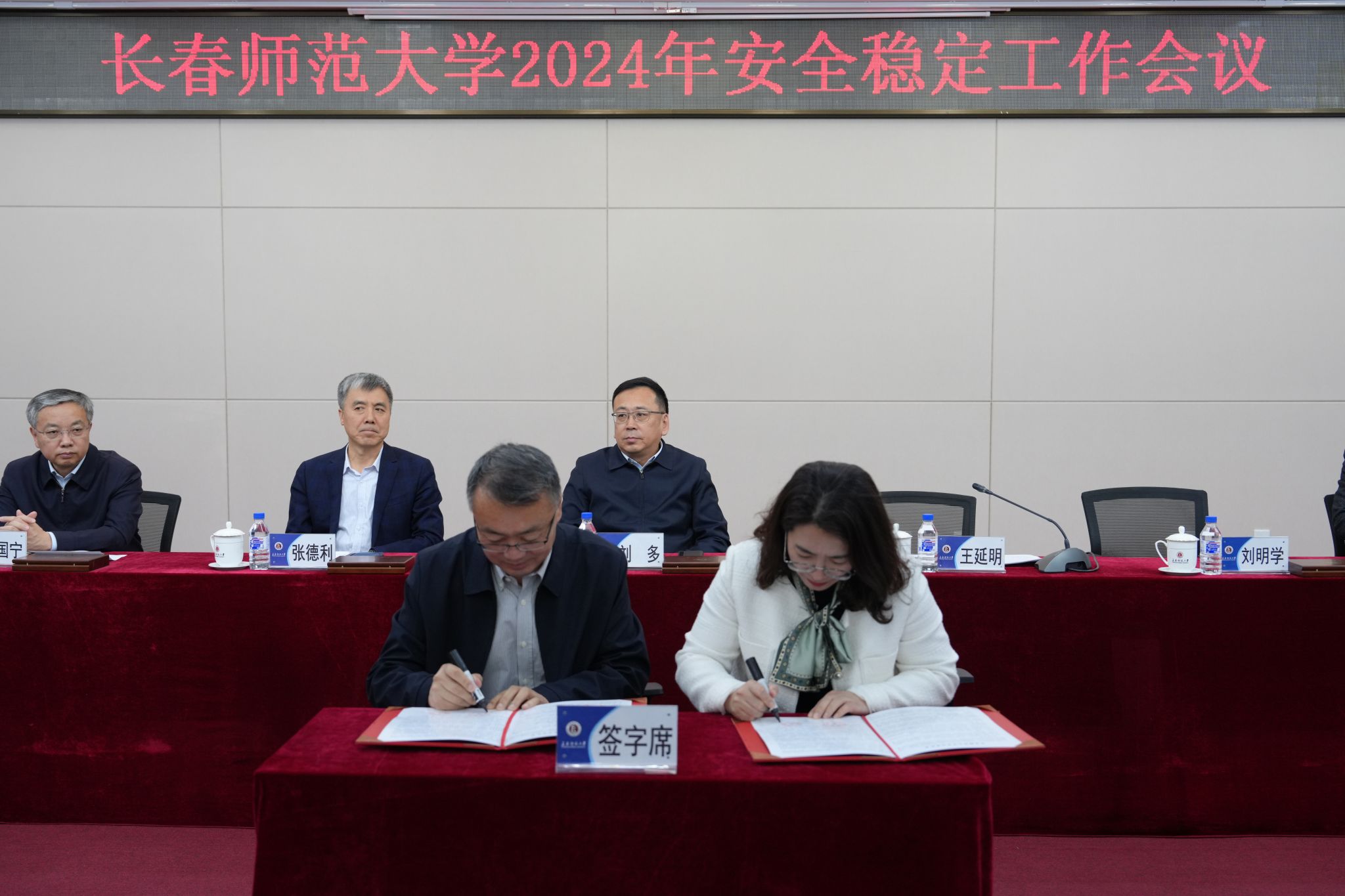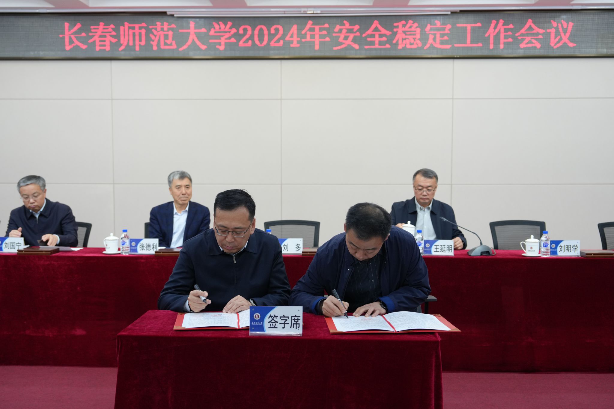 会上,刘多与各党总支(分党委)书记签订维稳责任书,王延明与各学院、各部门行政负责人签订安全责任书。