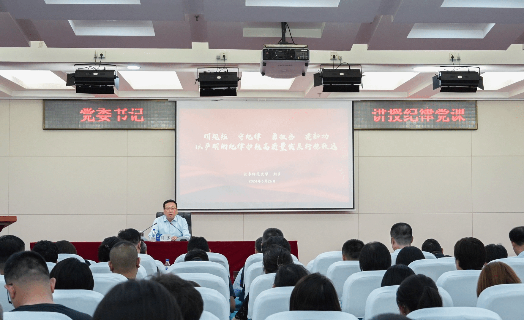 刘多强调,在推进长师高质量发展的进程中,广大党员干部每一天都在“赶考”,一项项任务就是必须要面对的“考题”、一个个岗位就是必须要站稳的“考场”、一条条党纪就是必须要严守的“考规”。要坚持纪律建设与事业发展同向发力、同步推进,做到党性党风党纪一起抓,不断提升依规依法依纪干事创业的能力和水平,书写遵规守纪、建功立业的新篇章,推动学校事业高质量发展行稳致远,在吉林全面振兴率先实现新突破的征程上,展现长师新作为、作出长师新贡献。