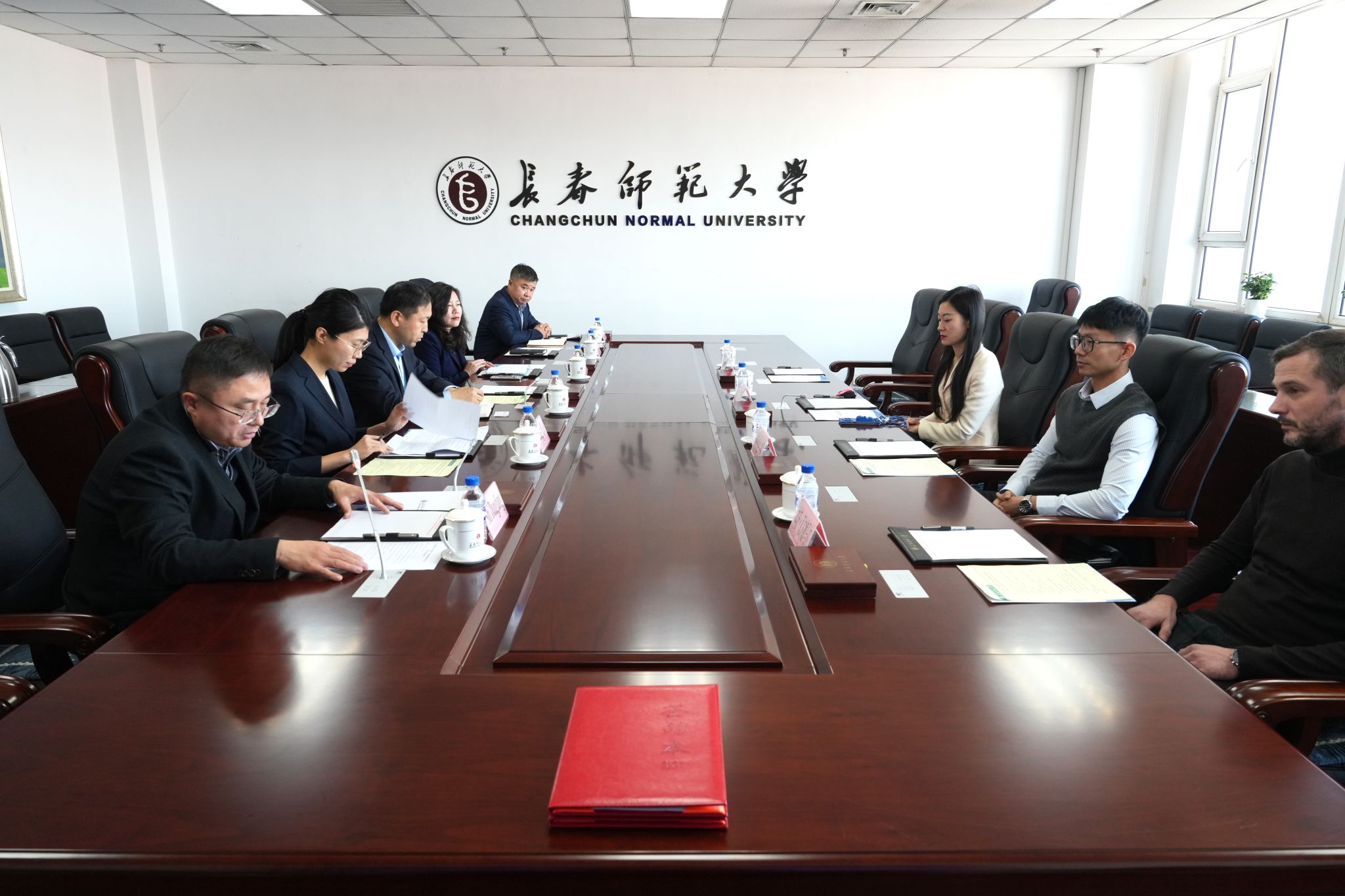 奥迪一汽新能源汽车有限公司人才赋能中心负责人刘佳斌,学校国际合作与交流处、教务处、工程学院、中心实验室等部门负责人参加座谈会。