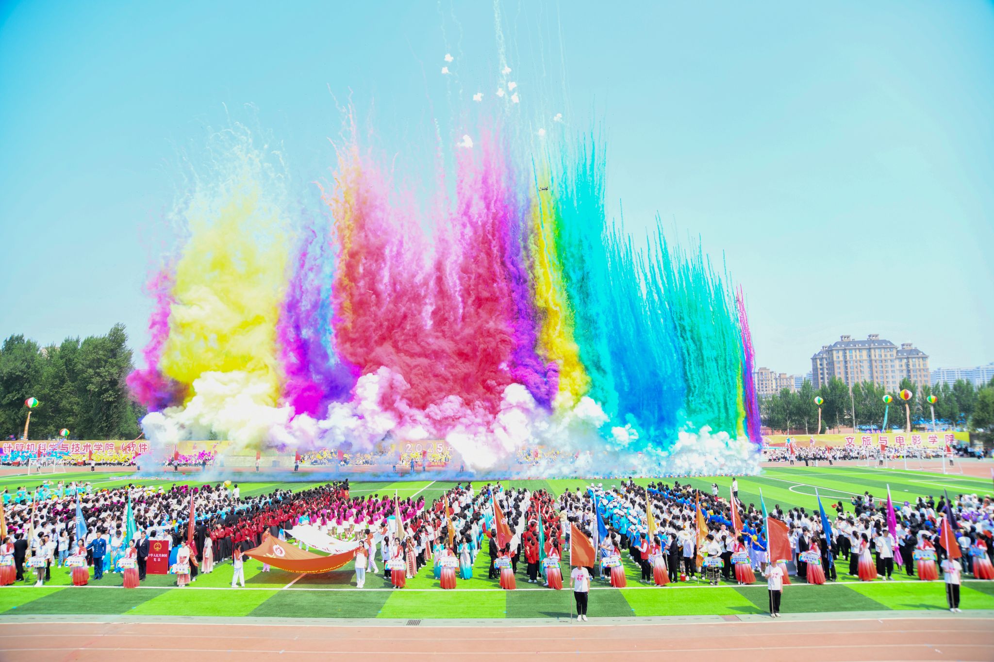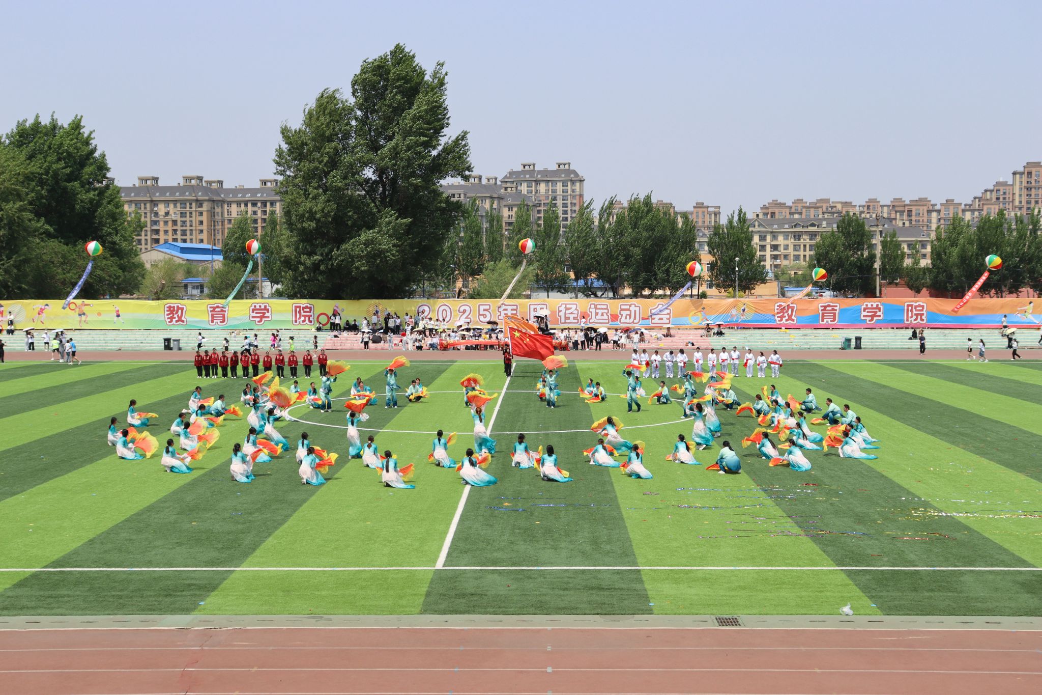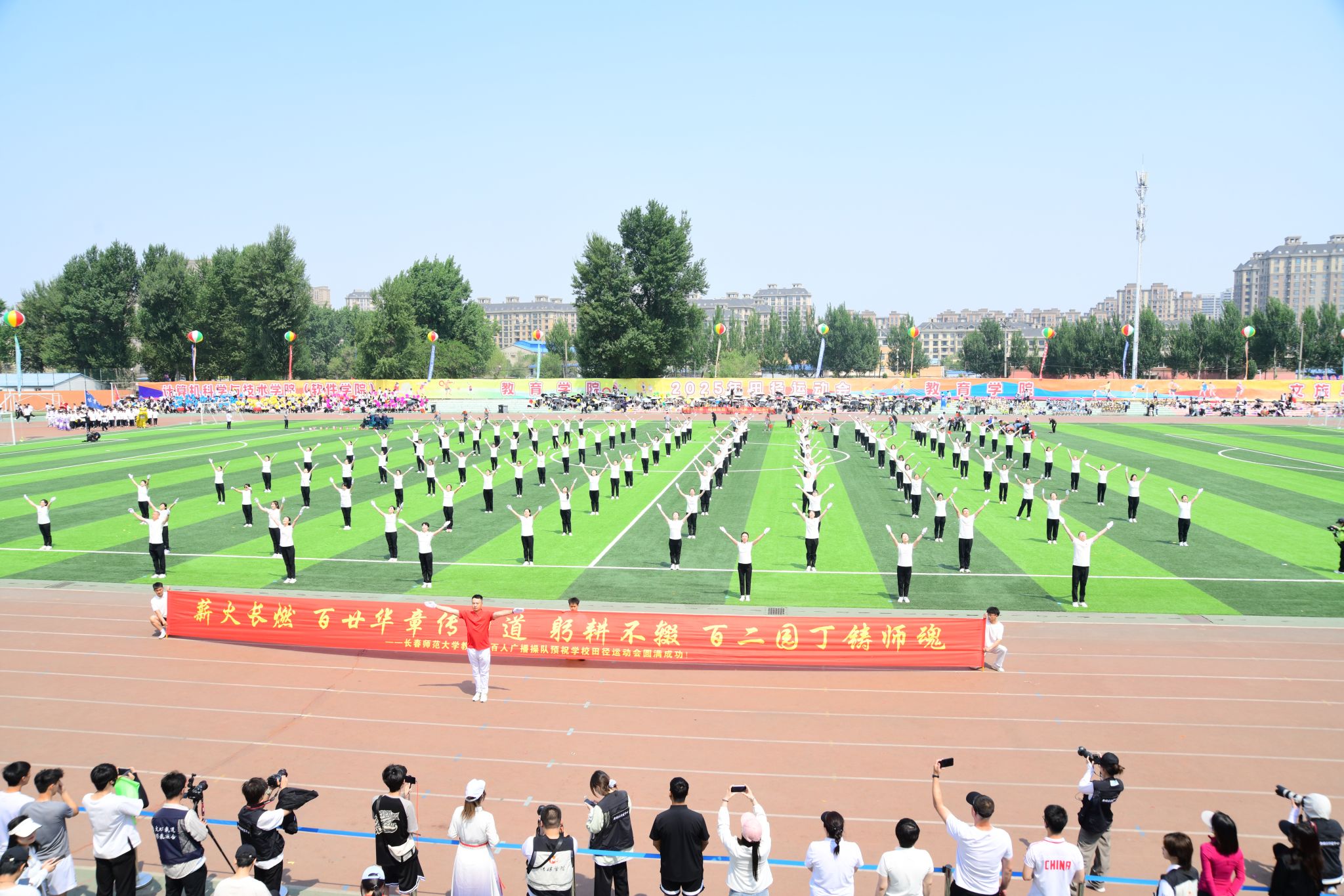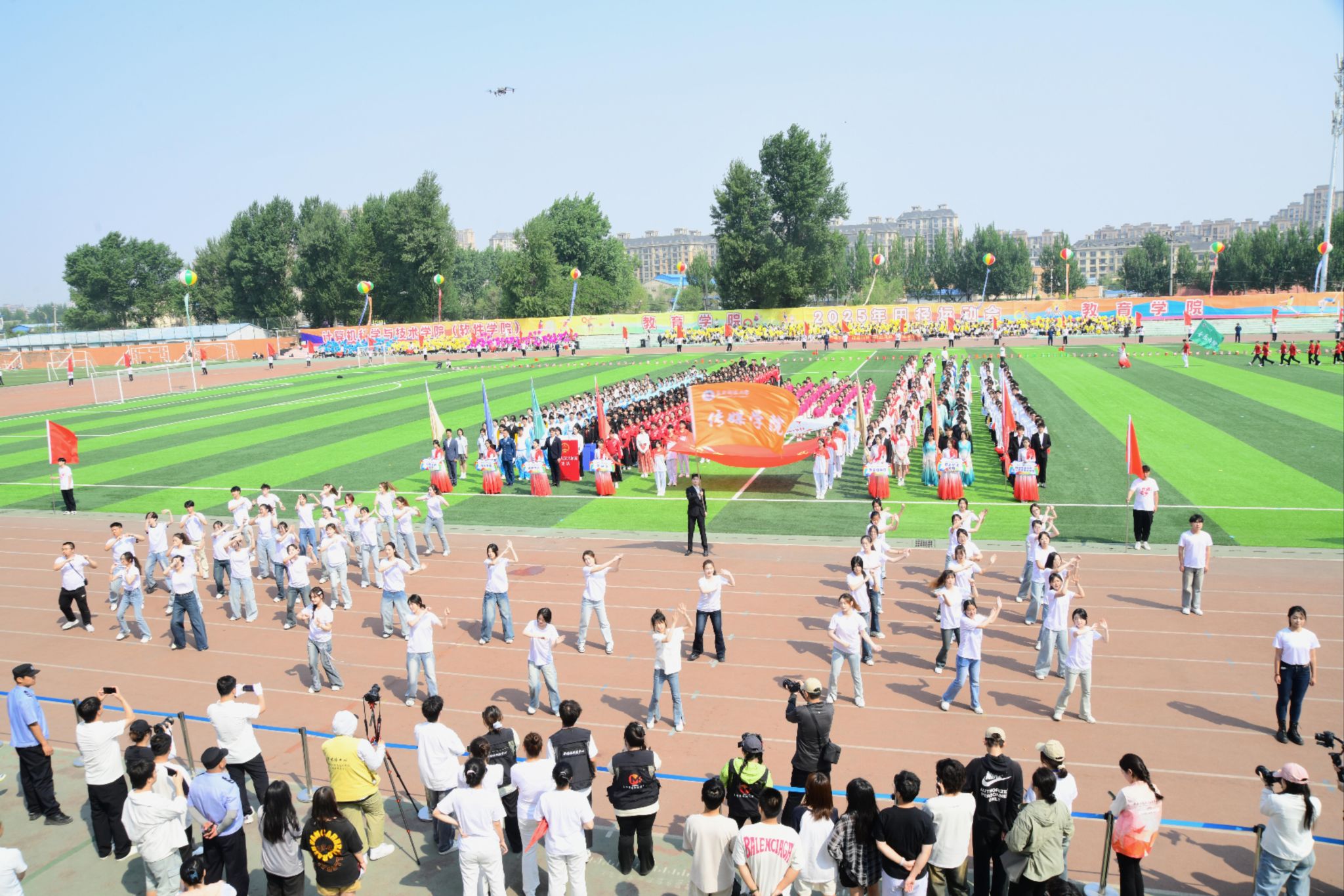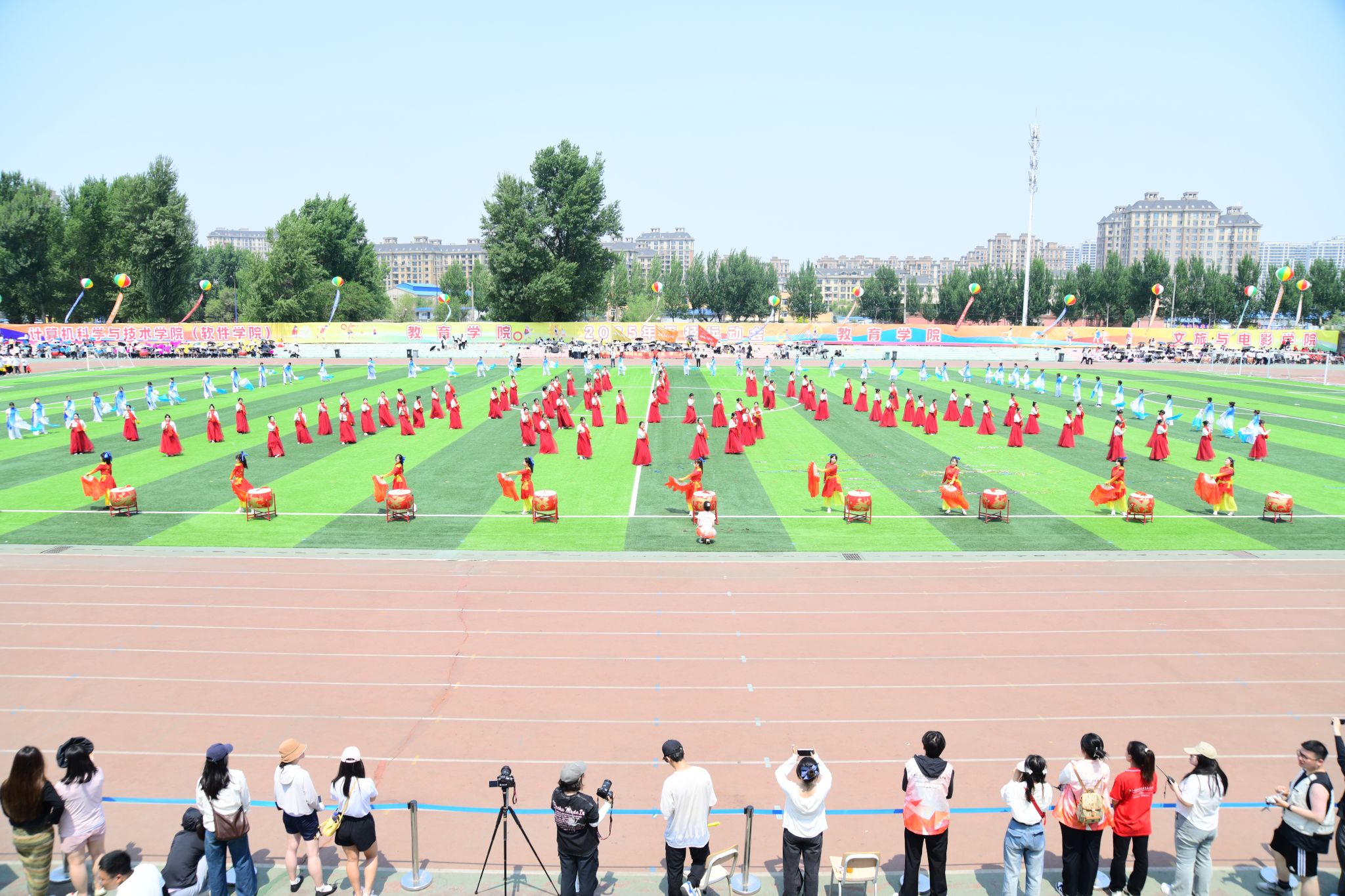 观众席上, 彩色旗帜挥舞,欢呼喝彩此起彼伏;绿茵场中,教职工广播体操动作整齐划一,用最饱满的精神状态,抒写着“学无止境 行为师表”的新序章,各学院百人舞表演同学们翩翩起舞,尽情律动,展现新时代青年学子的青春风采。