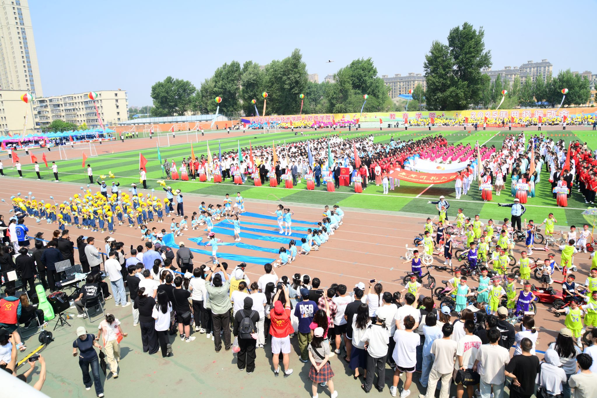 田径场上,同学们奋力冲刺的姿态在此定格,他们奔跑如风,展现力量;老师们在毛毛虫竞速、同心鼓等趣味运动项目中诠释快乐,享受运动。